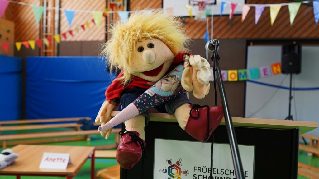 Am Donnerstag, den 10.07.25, durften wir die Puppenbühne Maatzamba bei uns begrüßen. Die Schülerinnen und Schüler warteten in der Turnhalle schon gespannt auf den Auftritt des NEINhorns und seinen Freunden. Dann ging es endlich los und wir erlebten 45 Minuten voller Spannung, Spaß und Action. Es war eine tolle Aufführung mit lustigen Puppen, die witzig und leidenschaftlich von ihrer Spielerin präsentiert wurden. Beim Hinausgehen aus der Turnhalle wartete das NEINhorn noch, um sich einige Streicheleinheiten abzuholen und sich von den Kindern persönlich zu verabschieden.